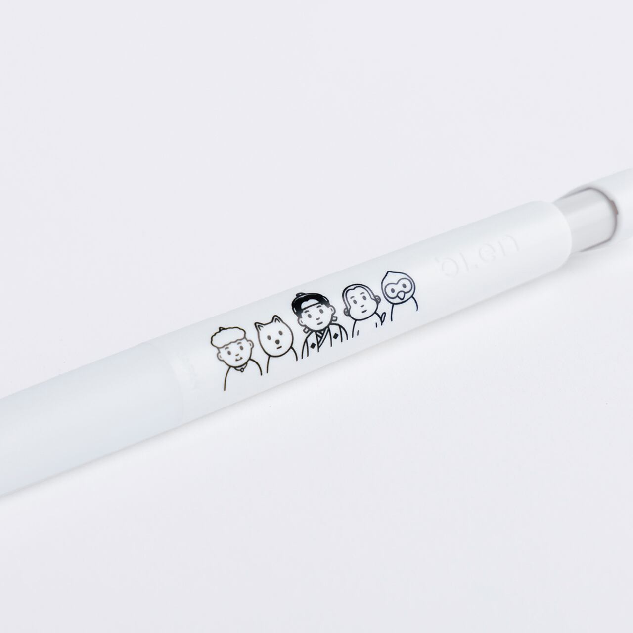 桃太郎と仲間たちが仲良く横一列に並んだ、見ているだけで心が和むボールペンです。ZEBRAのブレンを採用しており、なめらかな書き心地とブレにくい安定感が特徴。桃太郎たちと一緒に、毎日の勉強やお仕事を楽しんでください。