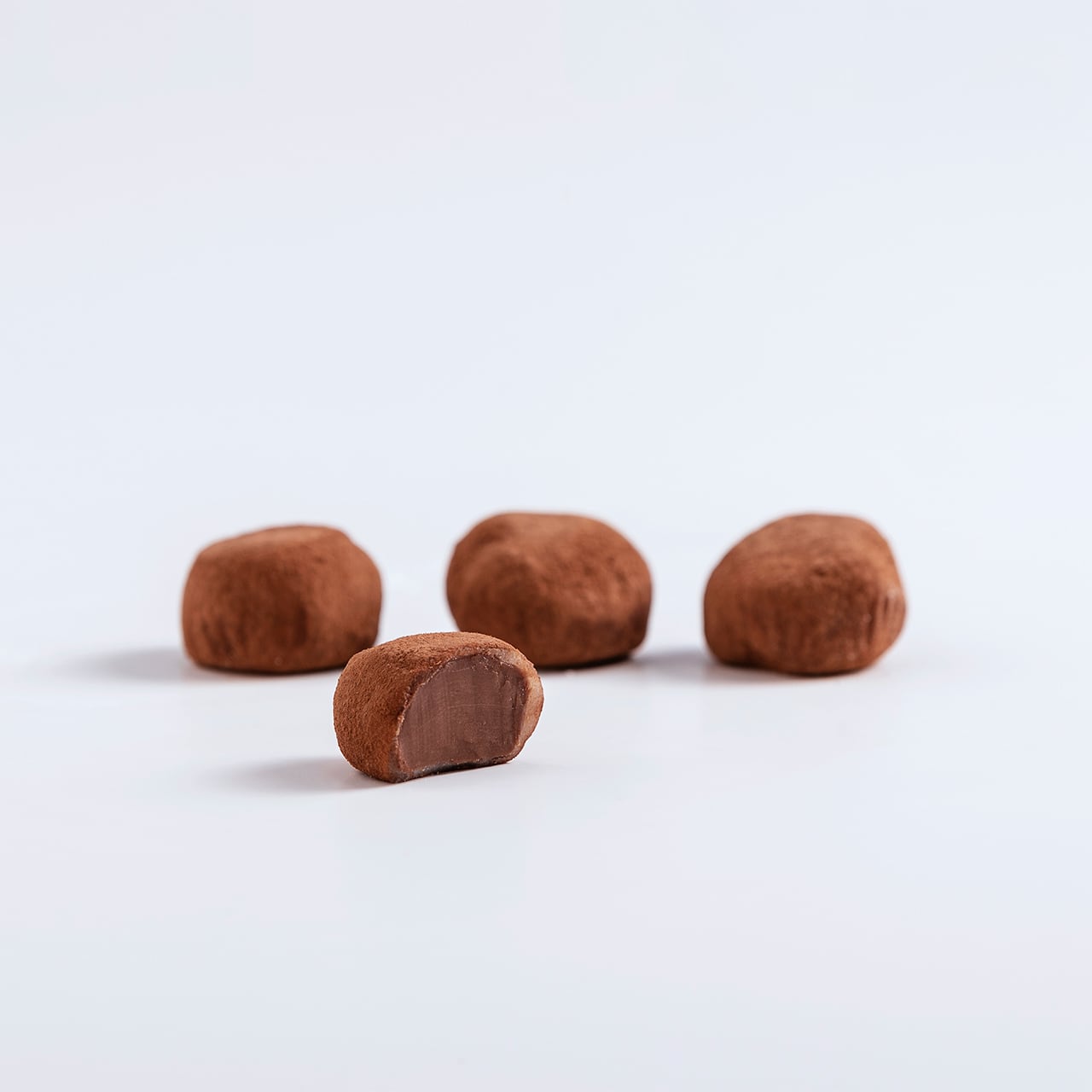 上質な生チョコをおもちで包み、和と洋の絶妙なハーモニーを醸し出しました創作新和菓子でございます。